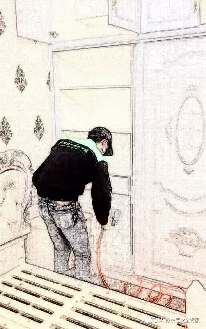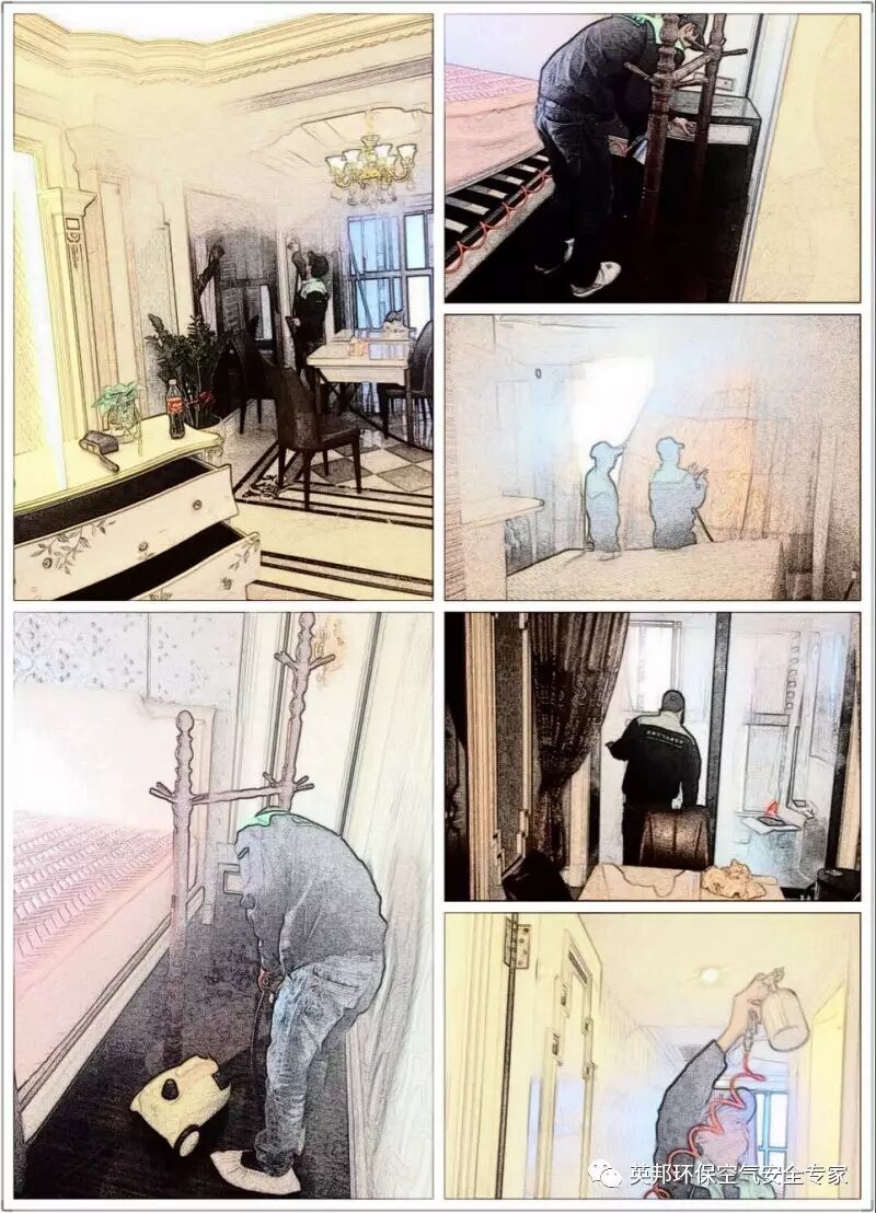 我蹑手蹑脚来到房门外,悄悄地伸头查看屋里的情况,着客厅没什么人,我又挪进客厅里,只见老爸蹲在一个公主房里,一丝不苟的在工作,汗水都浸湿了他的英邦环保除醛的工作服。