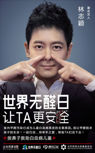 今天是4月26日——世界无醛日。很多人都积极响应无醛主题,掀起一波“按鼻子”热潮,就连明星们也纷纷加入这个捍卫呼吸健康的活动中,林志颖领衔,第一时间在微博中发出一张“按鼻子”照片,身体力行的呼吁大家关注白血病儿童。